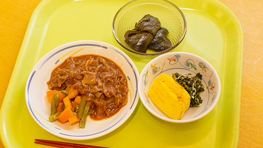 楽に嚥下できるという意味を込め、『らくらく食』と名付けた食事形態を提供しています。見た目は常食とほぼ同じですが、歯が無くても咀嚼でき、食塊形成をサポートします。