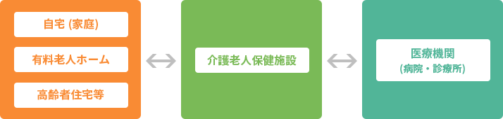 介護老人保健施設とは、入所(リピート利用)、ショートステイ、通所リハビリ、訪問リハビリを利用していただくことで、在宅復帰、在宅介護を強力にバックアップする施設です。