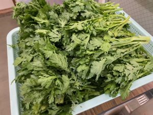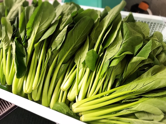 いこいの森厨房は普段の献立でも季節に合った生の野菜を提供しています! 上の画像は冬の野菜の小松菜です。