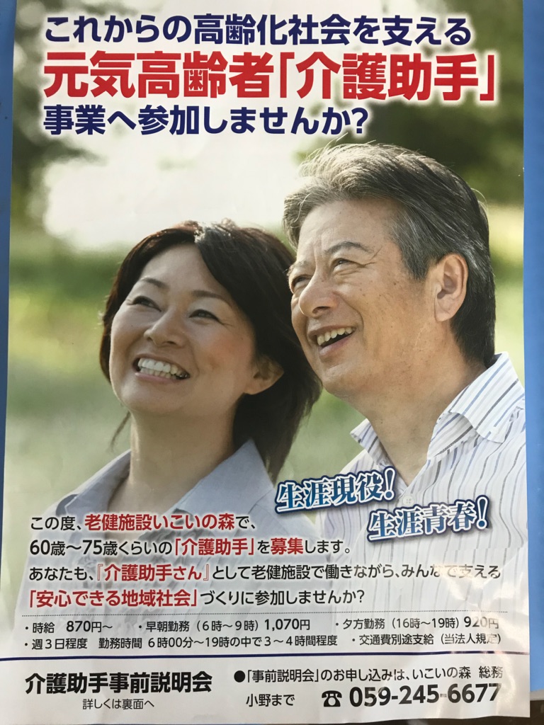 いこいの森では、元気高齢者「介護助手」を募集します。