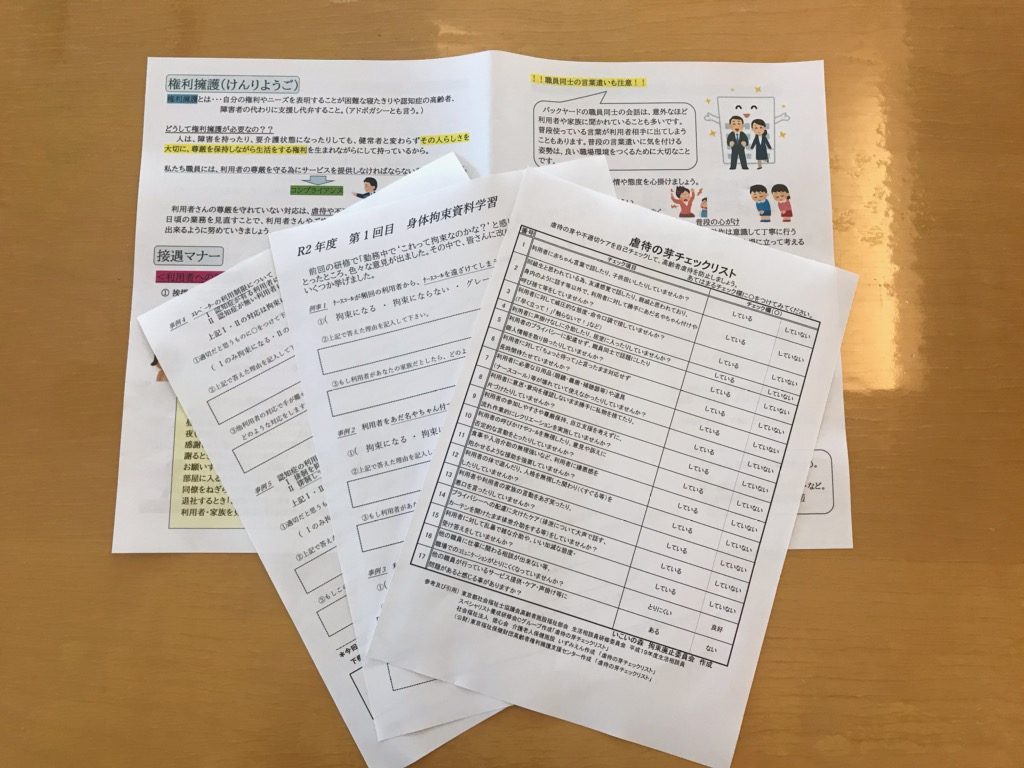 あとは、接遇マナーの資料と虐待の芽チェックリストを配布しました。