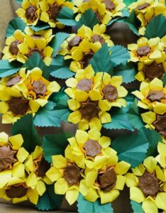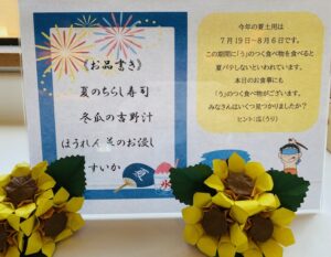 通所利用者の方に作っていただいた手作りひまわりも食卓が華やぎ好評でした。