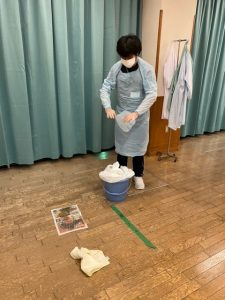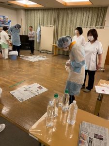 嘔吐物の処理の仕方、ガウンテクニックの方法、感染の知識を皆で共有し、