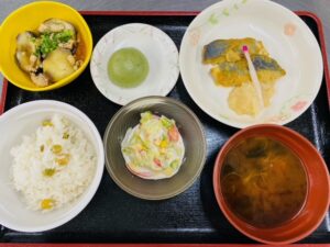 今月は”豆ごはん”献立でした。