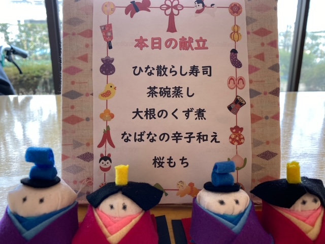 1日早いですが、雛祭り特別献立を提供させていただきました。