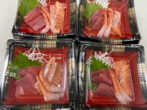 別館のお弁当の方々にはいつものお弁当箱とプラスしてお刺身専用の入れ物で見た目も豪華にして提供しました。