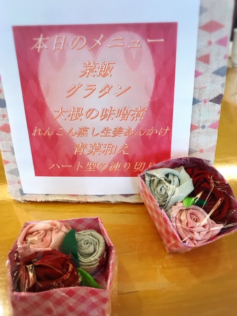 また2月はバレンタインデーもあるので、デザートはハート形の練り切り、ペースト・ムース食の方にはチョコレートムースが付きました。