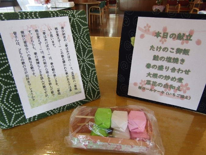 今回の特別献立は、菜花や筍など春を意識した旬の食材を使いました。
