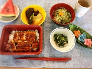 メインはうな重です!7月21日(土)土用の丑に先がけて皆さんにボリュームたっぷりのうなぎを召し上がっていただきました。