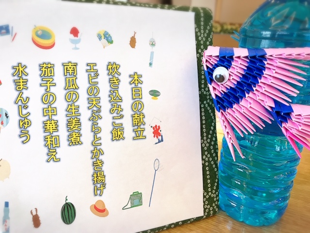 8月の特別献立になります。本来8月は特別献立の実施はありませんが、新型コロナウィルスの影響で納涼大会が中止になったのでその代わりの実施となりました。