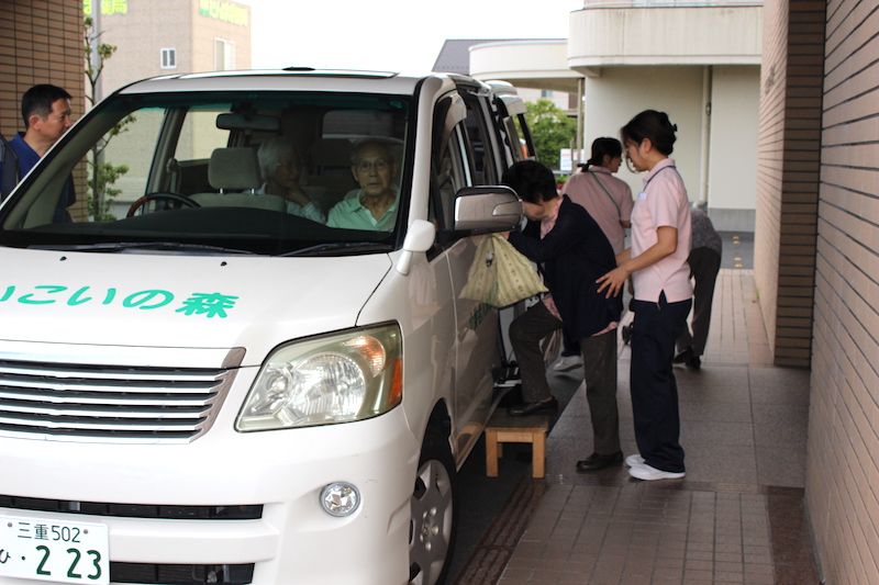 施設規定の範囲にお住まいの方は、お体の状態に合わせた送迎車で送迎致します。送迎時間は、利用者毎に異なります。ご本人やご家族により送迎して頂いても構いません。