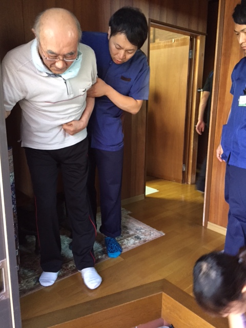 退所前には、ご本人・リハビリスタッフ・支援相談員、居宅のケアマネジャー等でご自宅を訪問して、ご自宅で動作の確認をし、住宅改修が必要かどうか、どのようなレンタル商品が必要か、どのような介護サービスが必要かを検討し調整します。