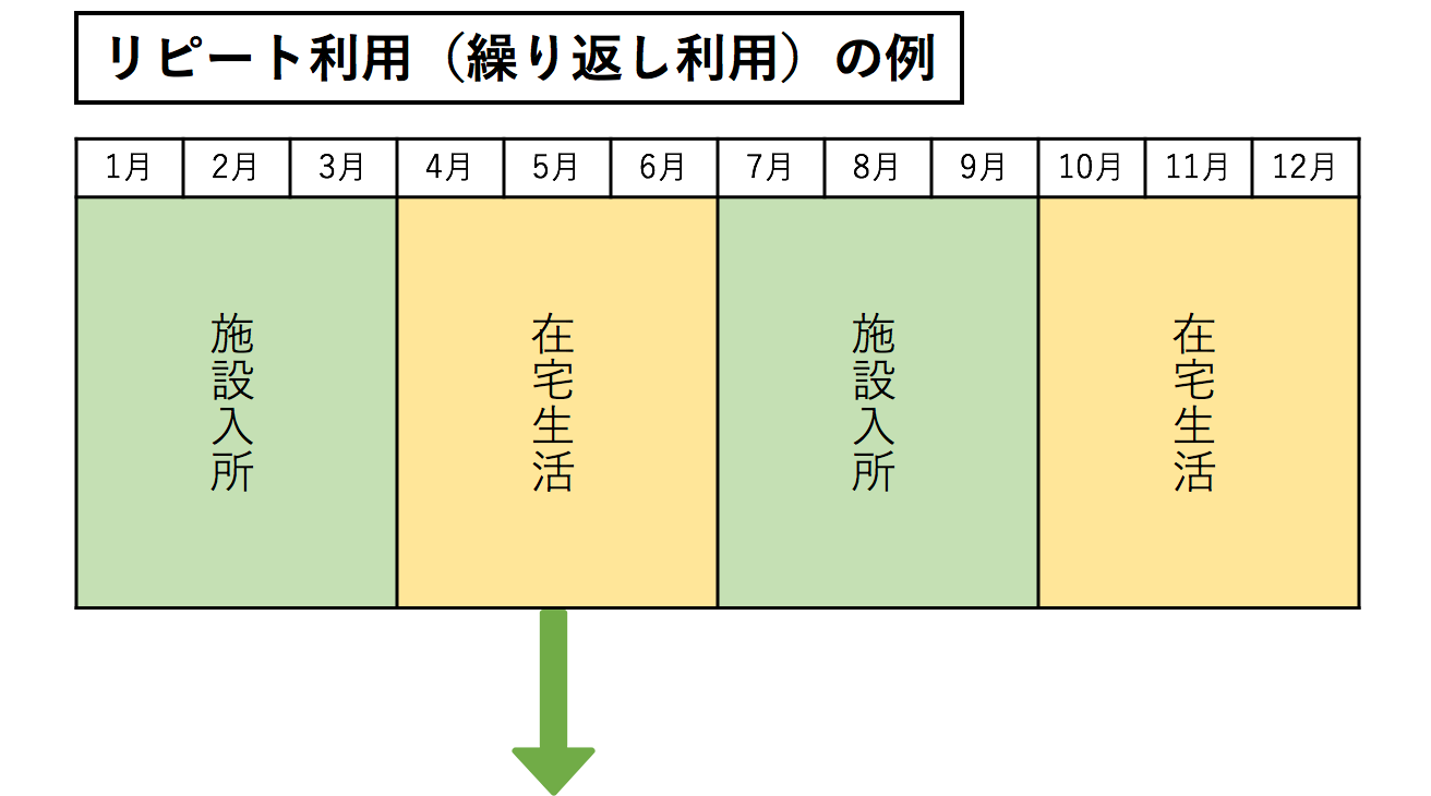 ご家族の介護負担軽減やご本人のリハビリを目的に繰り返してご利用して頂く事が可能です。繰り返して入所されることを、リピート入所(リピート利用)と呼んでいます。